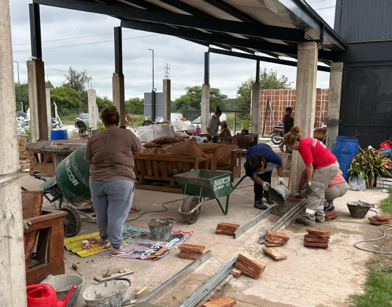 Un taller para aprender a construir desde lo sustentable. Se utiliza barro, paja y materiales reciclados para levantar pequeñas estructuras o mejorar espacios, siempre desde el trabajo colectivo y el respeto por la tierra.